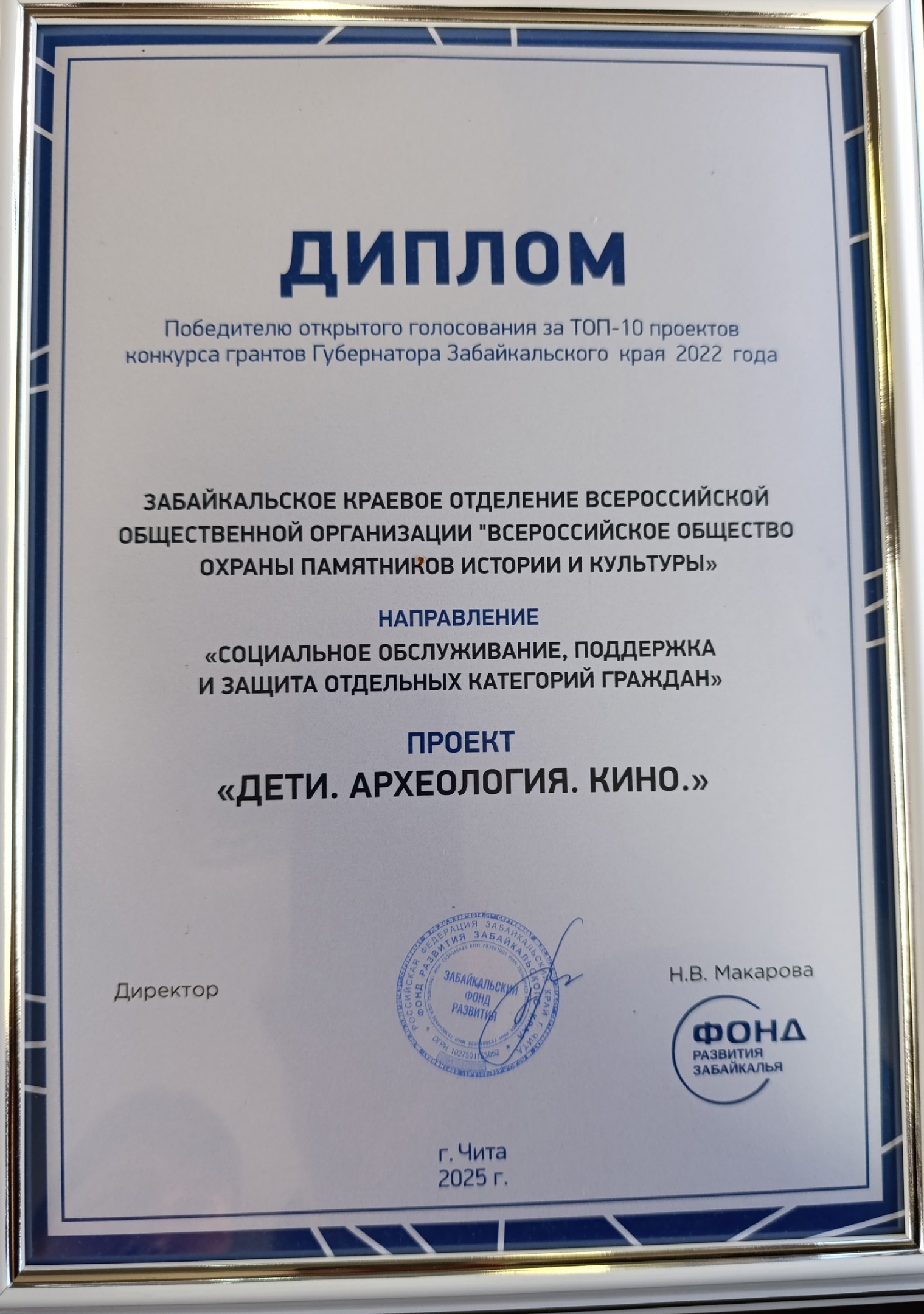27 февраля отмечается Всемирный день НКО (некоммерческих организаций) и в этот замечательный день прошло торжественное награждение 10 лучших проектов, получивших поддержку гранта губернатор Забайкалья в 2022 году. В отборе участвовало более 40 проектов. Наш проект «Дети. Археология. Кино» вошел в десятку лучших. Мы очень рады, что наша деятельность по популяризации культурного наследия Забайкальского края в школьной среде, высоко оценивается не только экспертным сообществом, но и жителями нашего региона!